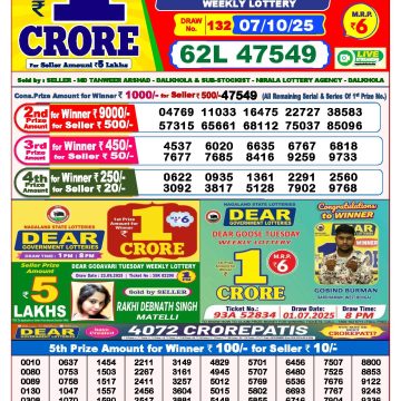 Dear lottery 6 PM Results 07.10.2025