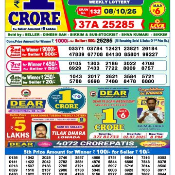 Dear lottery 1 PM Results 08.10.2025