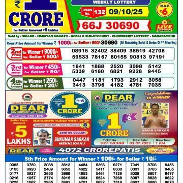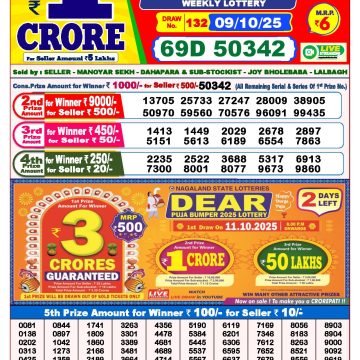 Dear lottery 6 PM Results 09.10.2025