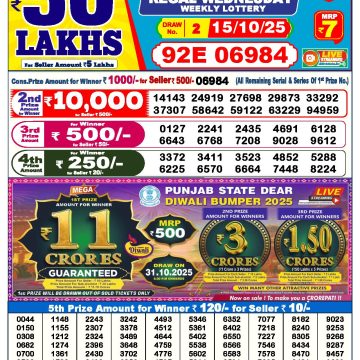 Dear 50 lottery Result 15.10.2025 6PM