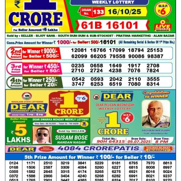 Dear lottery 6 PM Results 16.10.2025