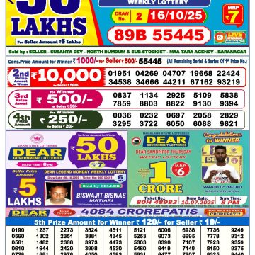 Dear 50 lottery Result 16.10.2025 6PM