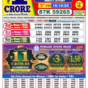 Dear lottery 1 PM Results 16.10.2025