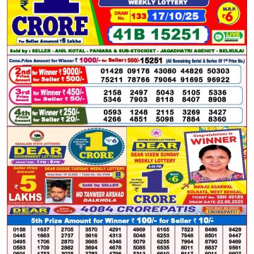 Dear lottery 6 PM Results 17.10.2025