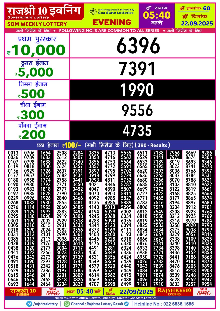 Rajshree 10 Evening lottery 05.40 PM 22.09.2025 Leave a Comment on Rajshree 10 Evening lottery 05.40 PM 22.09.2025