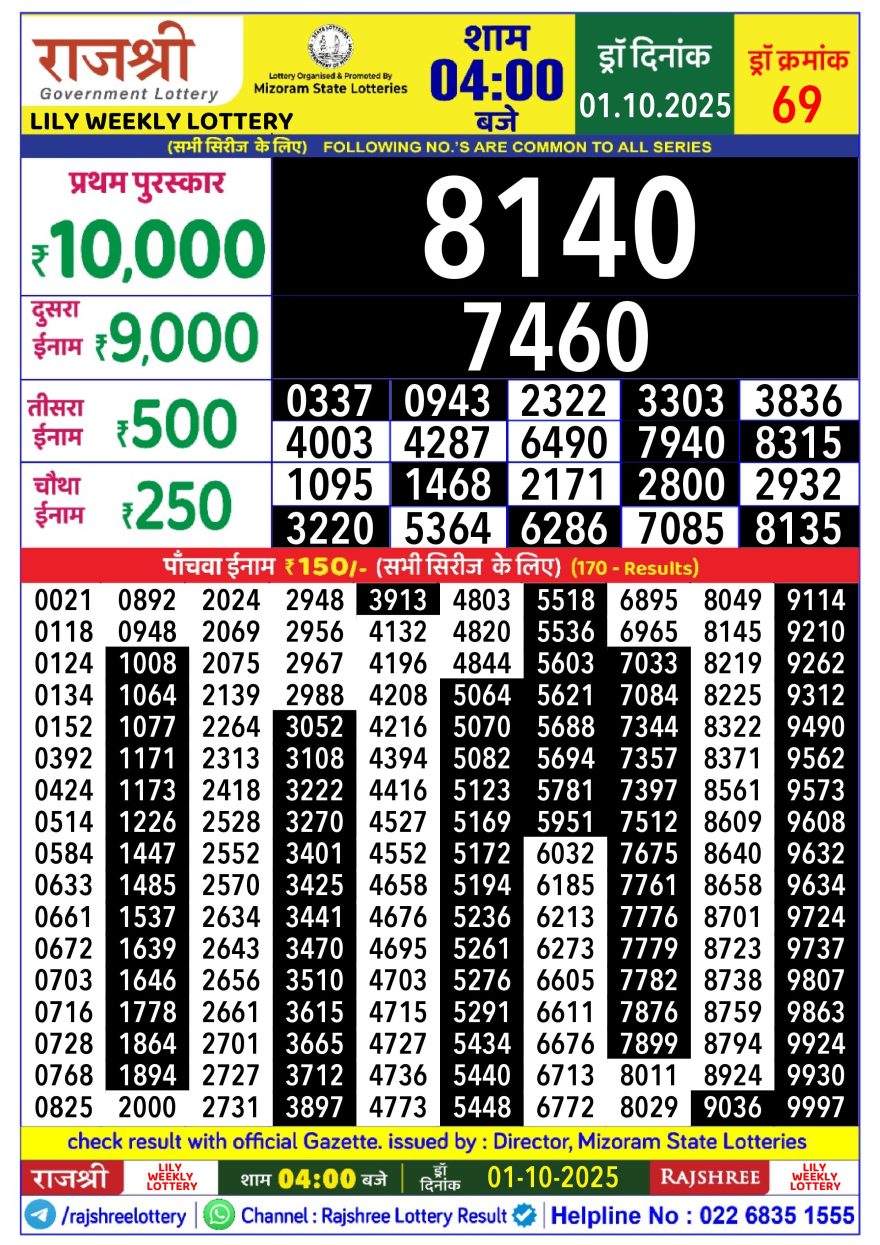 Rajshree Lily lottery 04:00 PM 01.10.2025 Leave a Comment on Rajshree Lily lottery 04:00 PM 01.10.2025