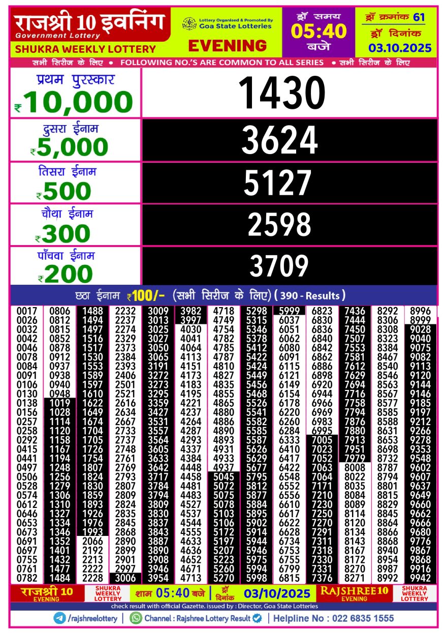 Rajshree 10 Evening lottery 05.40 PM 03.10.2025 Leave a Comment on Rajshree 10 Evening lottery 05.40 PM 03.10.2025