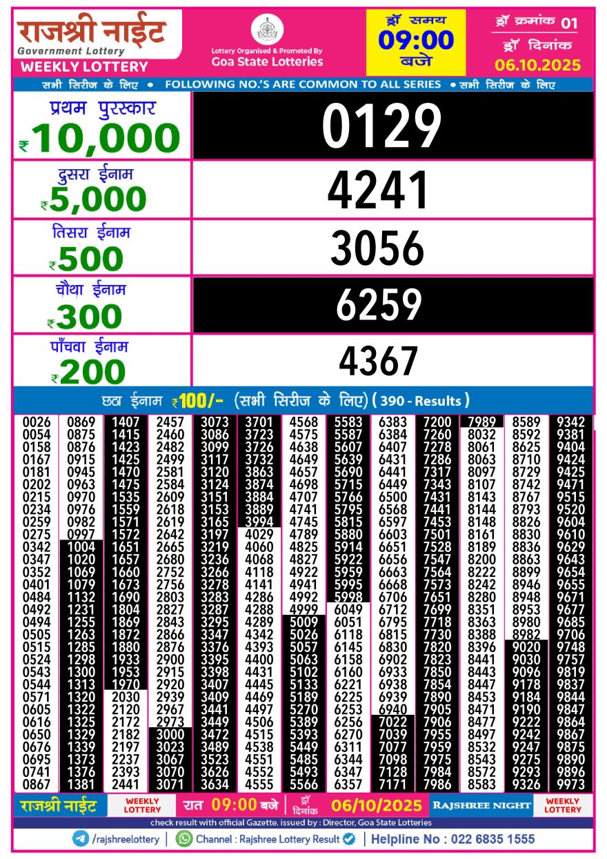 Rajshree 30 Som Weekly lottery 09.00PM 06.10.2025 Leave a Comment on Rajshree 30 Som Weekly lottery 09.00PM 06.10.2025
