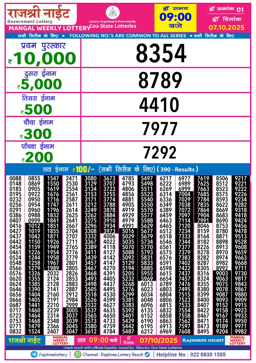 Rajshree 30 Mangal Weekly lottery 09.00PM 07.10.2025 Leave a Comment on Rajshree 30 Mangal Weekly lottery 09.00PM 07.10.2025