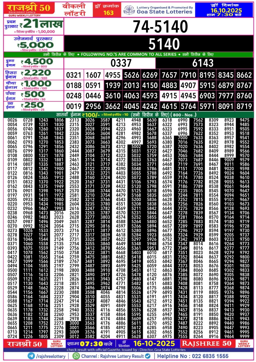 Rajshree 50 Guru Weekly lottery 07.30PM 16.10.2025 Leave a Comment on Rajshree 50 Guru Weekly lottery 07.30PM 16.10.2025