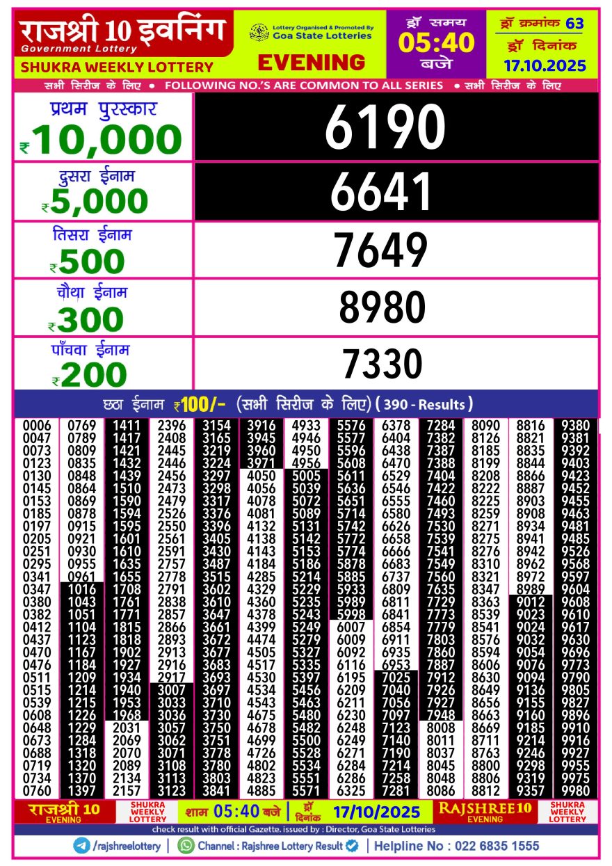 Rajshree 10 Evening lottery 05.40 PM 17.10.2025 Leave a Comment on Rajshree 10 Evening lottery 05.40 PM 17.10.2025