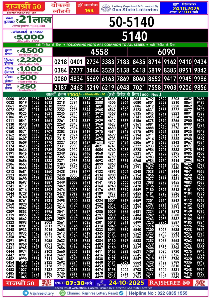 Rajshree 50 Shukra Weekly lottery 07.30PM 24.10.2025 Leave a Comment on Rajshree 50 Shukra Weekly lottery 07.30PM 24.10.2025