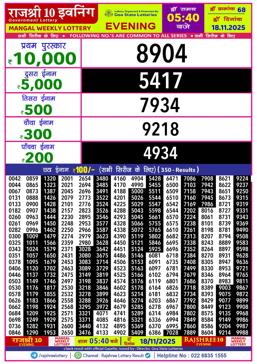 Rajshree 10 Evening lottery 05.40 PM 18.11.2025 Leave a Comment on Rajshree 10 Evening lottery 05.40 PM 18.11.2025