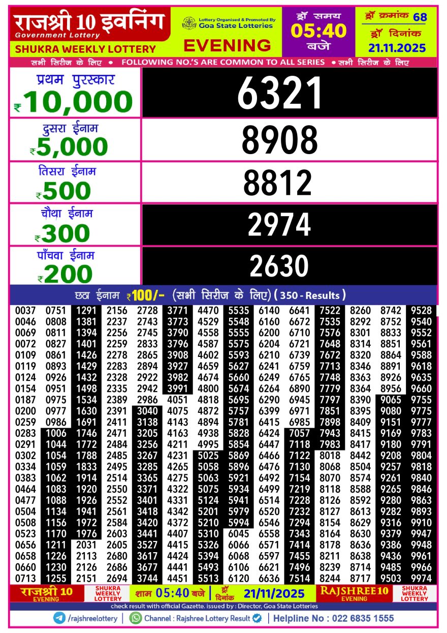 Rajshree 10 Evening lottery 05.40 PM 21.11.2025 Leave a Comment on Rajshree 10 Evening lottery 05.40 PM 21.11.2025