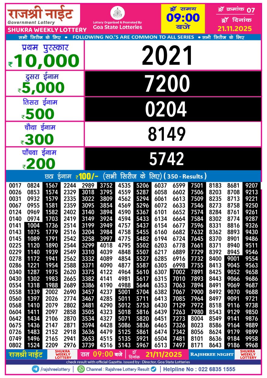 Rajshree 30 Shukra Weekly lottery 09.00PM 21.11.2025 Leave a Comment on Rajshree 30 Shukra Weekly lottery 09.00PM 21.11.2025