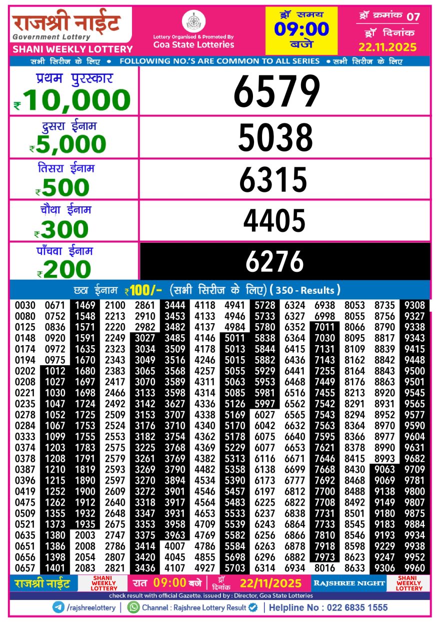 Rajshree 30 Shani Weekly lottery 09.00PM 22.11.2025 Leave a Comment on Rajshree 30 Shani Weekly lottery 09.00PM 22.11.2025