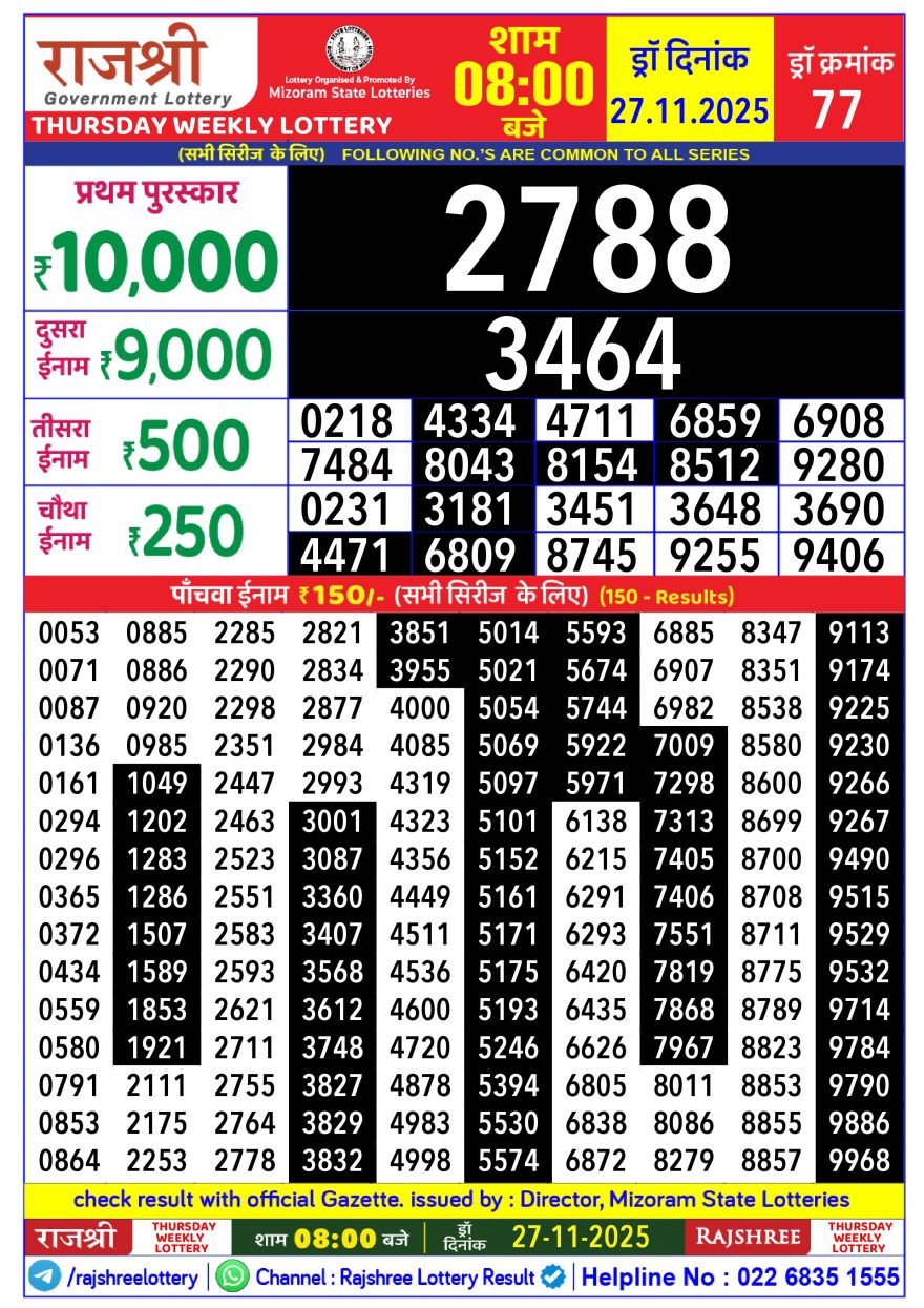 Rajshree Thursday Weekly lottery 08.00PM 27.11.2025 Leave a Comment on Rajshree Thursday Weekly lottery 08.00PM 27.11.2025