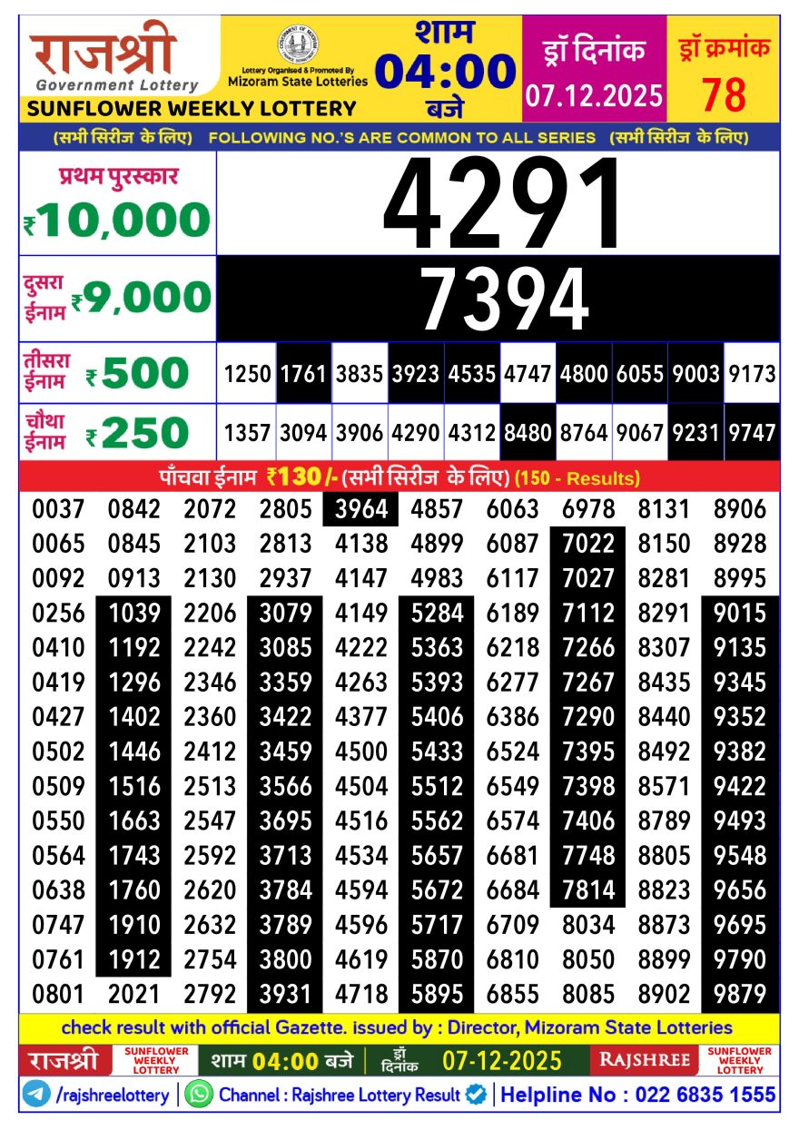 Rajshree Sunflower lottery 04:00 PM 07.12.2025 Leave a Comment on Rajshree Sunflower lottery 04:00 PM 07.12.2025
