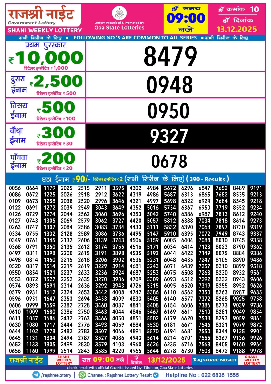 Rajshree 30 Shani Weekly lottery 09.00PM 13.12.2025 Leave a Comment on Rajshree 30 Shani Weekly lottery 09.00PM 13.12.2025