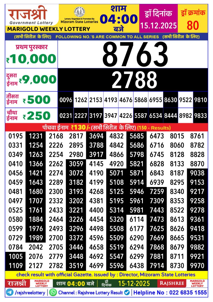 Rajshree Marigold lottery 04:00 PM 15.12.2025 Leave a Comment on Rajshree Marigold lottery 04:00 PM 15.12.2025
