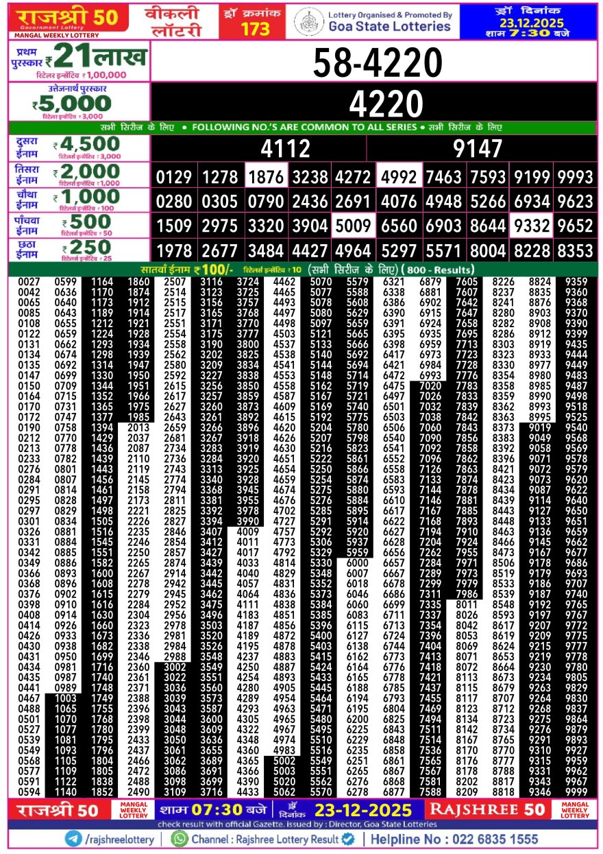 Rajshree 50 Mangal Weekly lottery 07.30PM 23.12.2025 Leave a Comment on Rajshree 50 Mangal Weekly lottery 07.30PM 23.12.2025