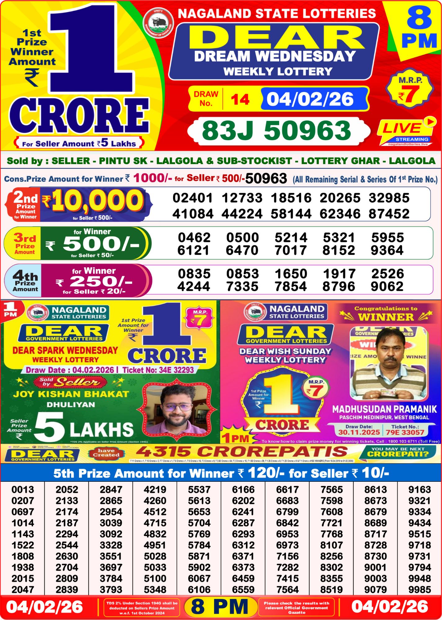 Dear Result 04-02-2026 1PM 6PM 8PM