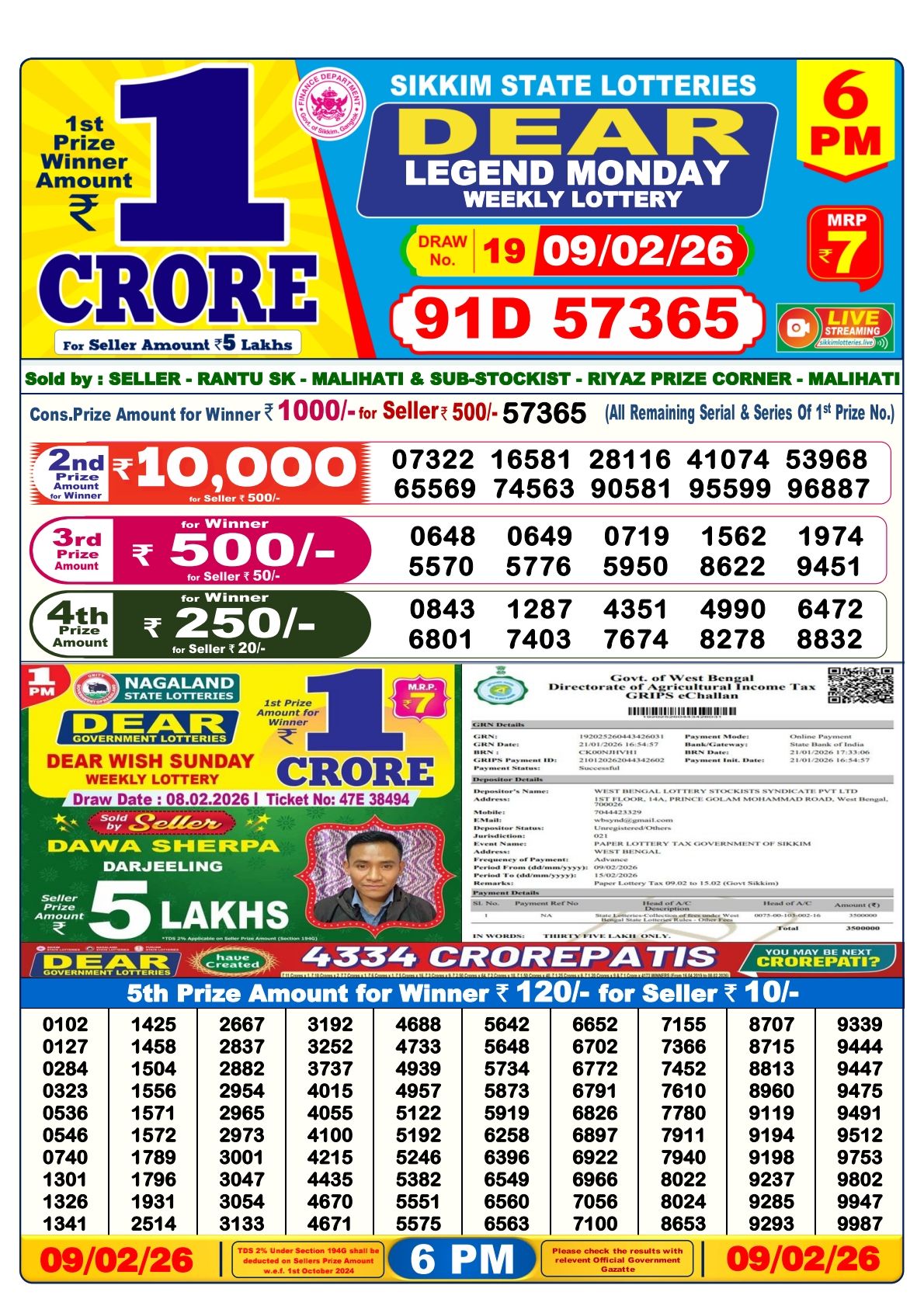 Dear Result 09-02-2026 1PM 6PM 8PM