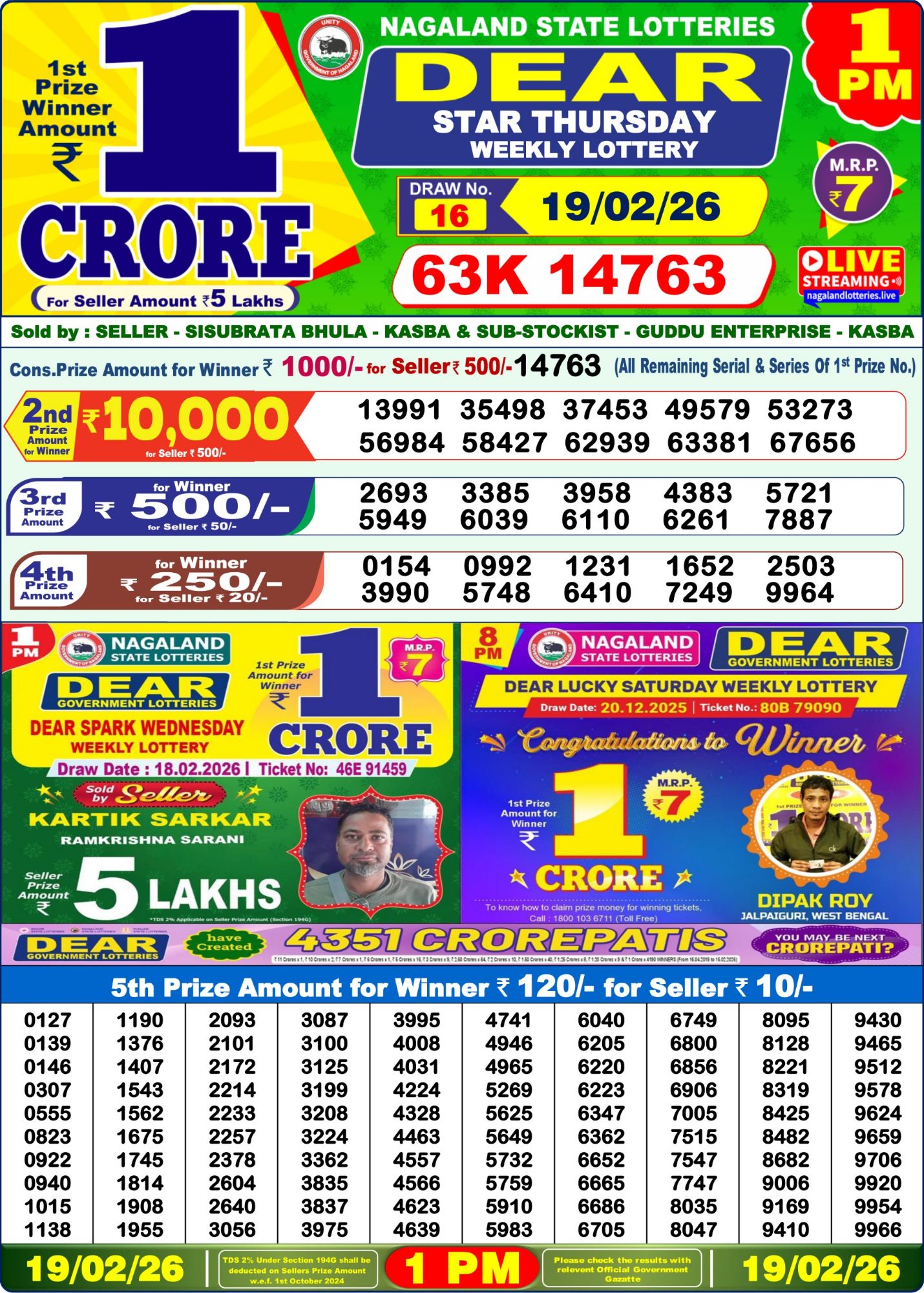 Dear Result 19-02-2026 1PM 6PM 8PM