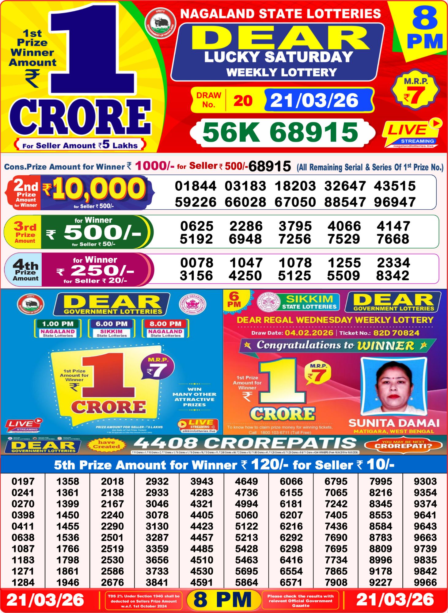 Dear Result 21-03-2026 1PM 6PM 8PM