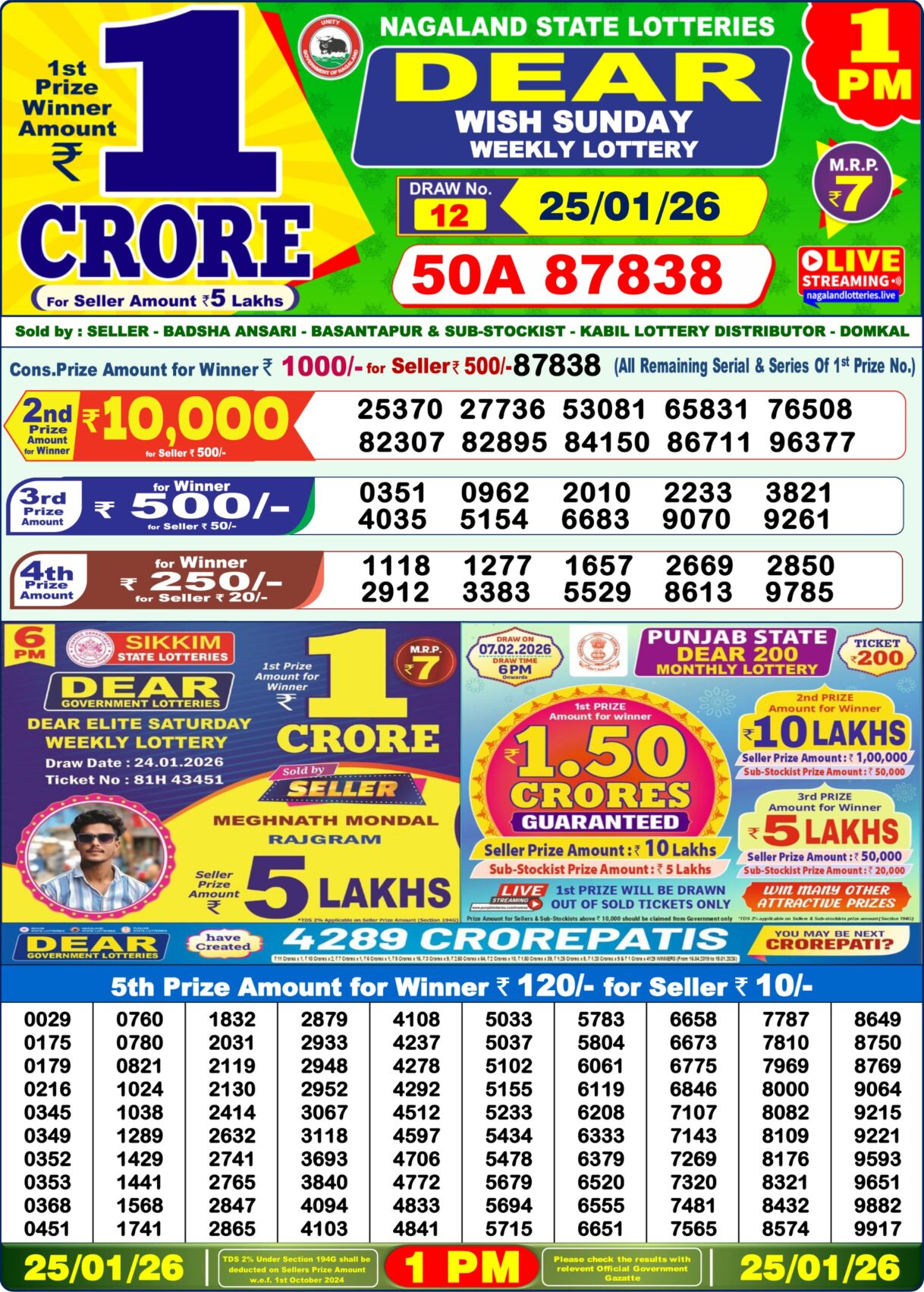 Dear Result 25 01 2026 6PM is Declared