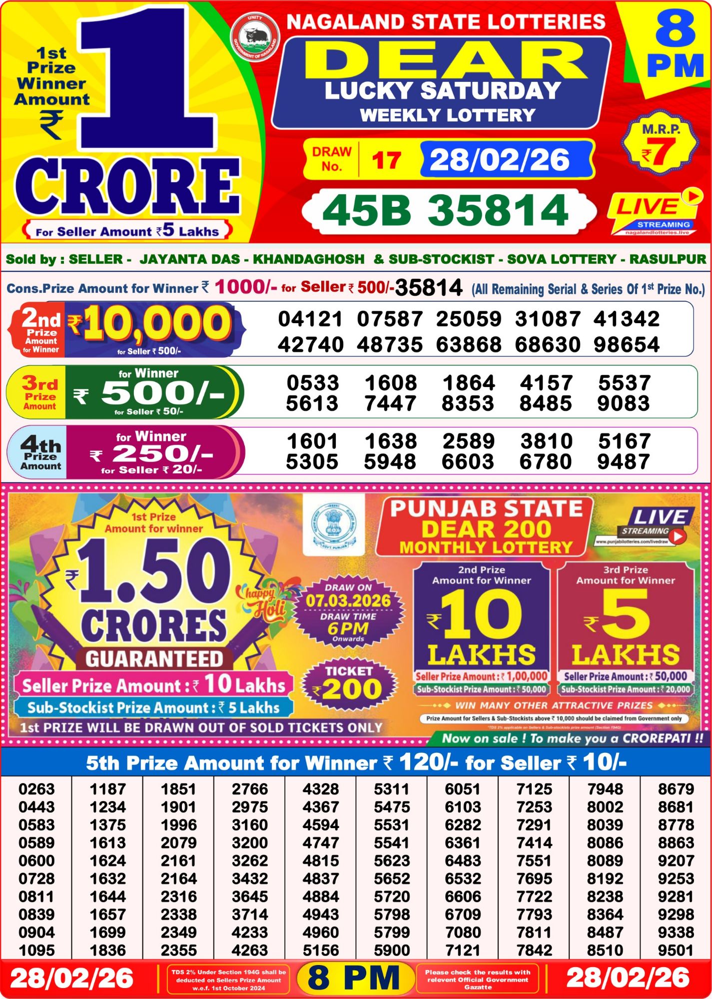 Dear Result 28-02-2026 1PM 6PM 8PM