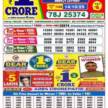 Rajshree Tuesday Weekly lottery 08.00PM 14.10.2025