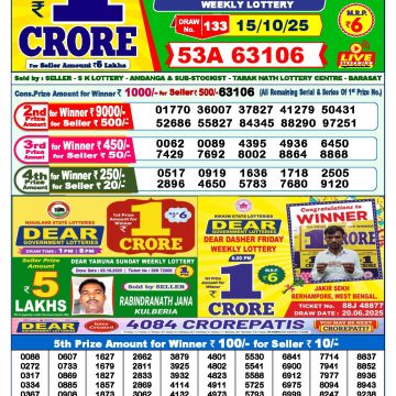 Rajshree Wednesday Weekly lottery 08.00PM 15.10.2025