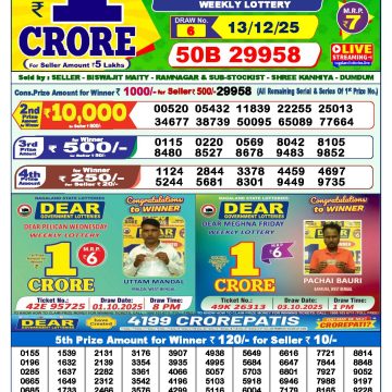 Dear lottery 6 PM Results 13.12.2025