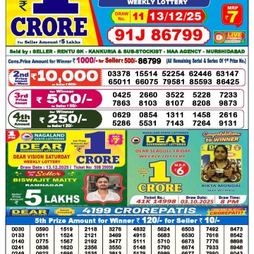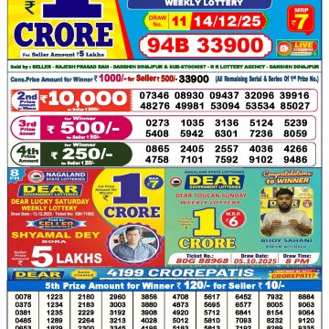 Dear lottery 1 PM Results 14.12.2025