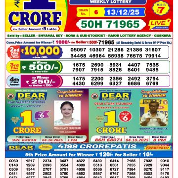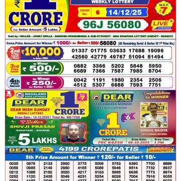 Dear lottery 6 PM Results 14.12.2025