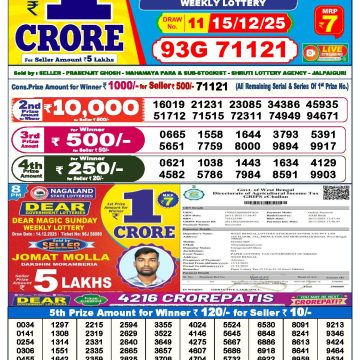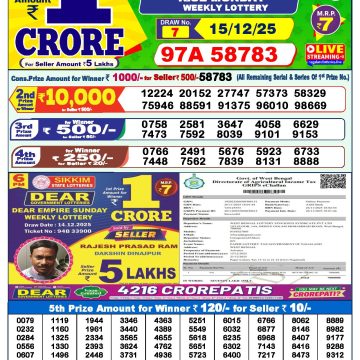 Dear lottery 1 PM Results 15.12.2025