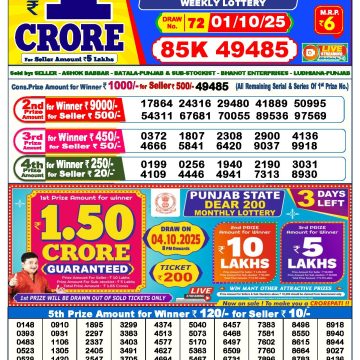 Dear 50 lottery Result 01.10.2025 6PM