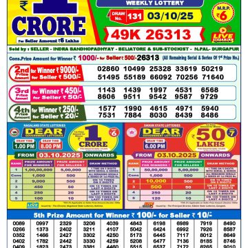 Dear lottery 1 PM Results 03.10.2025