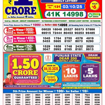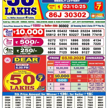 Dear 50 lottery Result 03.10.2025 6PM