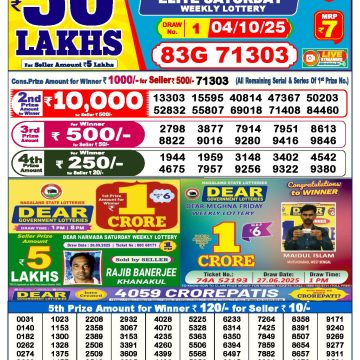 Dear lottery 1 PM Results 04.10.2025