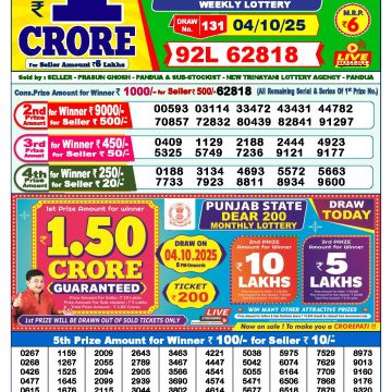 Dear 50 lottery Result 04.10.2025 6PM