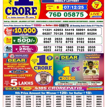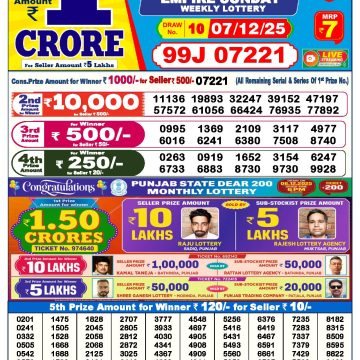 Rajshree 50 Ravi Weekly lottery 07.30PM 07.12.2025