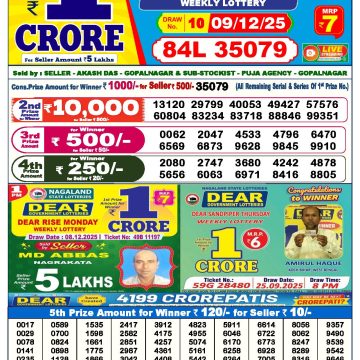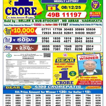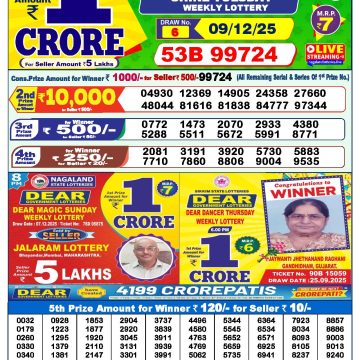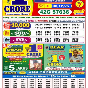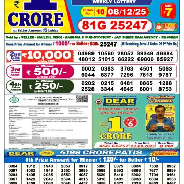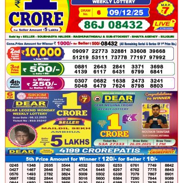 Rajshree Monday Weekly lottery 08.00PM 08.12.2025