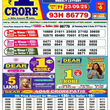 Rajshree Tuesday Weekly lottery 08.00PM 23.09.2025