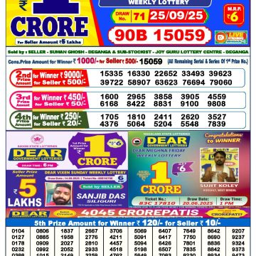Rajshree Thursday Weekly lottery 08.00PM 09.10.2025